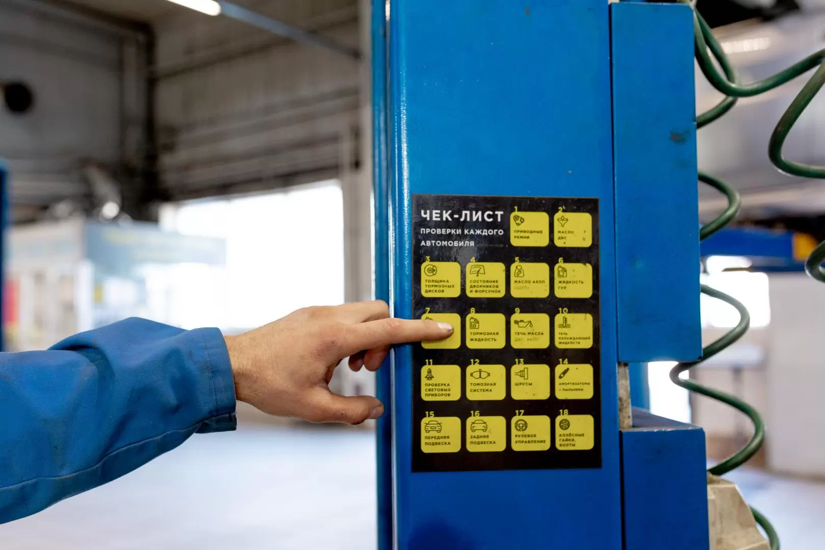 Подъём автомобиля на подъёмнике.